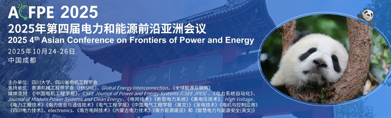 2025年第四届电力和能源前沿亚洲会议(ACFPE 2025) 将于2025年10月24日至26日在中国成都举行,会议由英国365上市公司和四川省电机工程学会联合主办,IEEE 成都分会技术协办,香港机械工程师学会(HKSME)和《全球能源互联网》提供支持,《中国电机工程学报》、CSEE Journal of Power and Energy Systems (CSEE JPES) 、《电力系统自动化》、Journal of Modern Power Systems and Clean Energy、《电网技术》《新型电力系统》《高电压技术》、High Voltage、《电力工程技术》《电力信息与通信技术》《电气工程学报》《中国电气工程学报(英文)》《发电技术》《电机与控制应用》《四川电力技术》、electronics、《南方电网技术》《内蒙古电力技术》《南方能源建设》、AR电气和《智慧电力与能源安全(英文)》提供媒体支持。会议主题“人工智能赋能未来智能电网技术创新”。