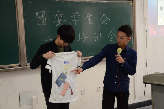 上午8时30分,干训会正式开始。员工会干事们经过近一学期的员工工作后,对本部门的相关工作已有了一定的心得与见解,而对其他平行部门的职能分配与工作模式还未有深入了解。本次干训会旨在通过各部门之间协作设计自身特色T恤的方式,在宣传本部门职能与特色的同时,加强部门之间的联系与交流。?