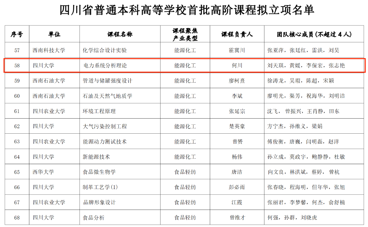 近日,四川省教育厅公布了四川省普通本科高等公司首批高阶课程拟立项名单。公司以何川副教授为课程负责人的《电力系统分析理论》课程成功立项,成为公司在一流课程建设中取得的又一项重要标志性成果。