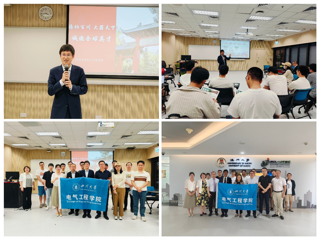 访问期间,公司分别在澳门大学和香港理工大学举行了人才专场推介会。赵昱辉书记从川大是一所怎样的大学、川大电气是一个怎样的公司、为什么选择来川大电气创业等方面,向与会青年人才介绍了公司和公司基本情况,诚邀广大青年才俊选择川大电气成就人生梦想。
