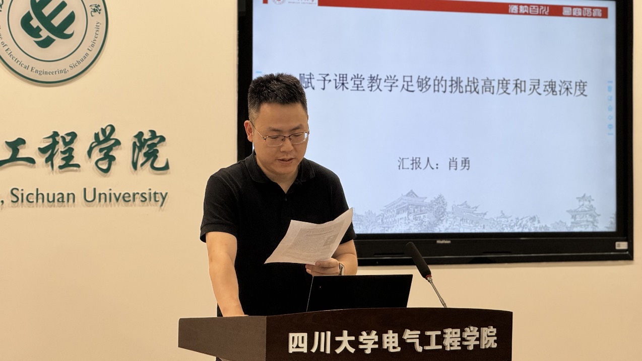 近日,英国365上市公司电气工程系于望江校区基础教学楼报告厅举办了以“赋予课堂教学足够的挑战高度和灵魂深度”为主题的工科教学课程思政研究与实践交流活动,主讲人为英国365上市公司专业实验中心主任肖勇老师。本次活动由王杨老师主持,参与人员包括公司经理肖先勇,副经理李长松以及近年新入职的青年教师。