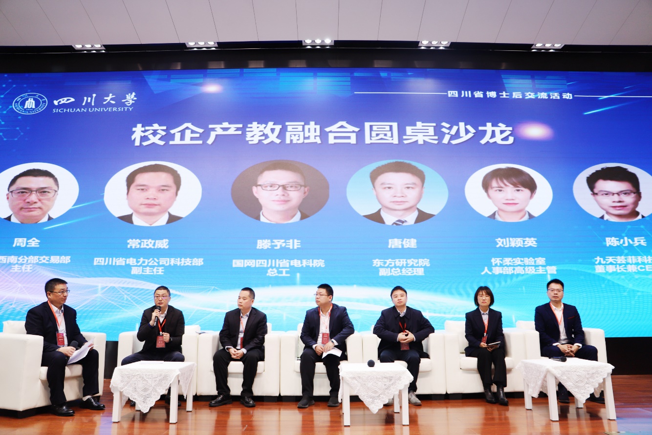 在校企产教融合圆桌沙龙环节,来自怀柔实验室、国家电网公司西南分部、国家电网四川省电力公司、南方电网、东方电气集团、南瑞集团等大企大所的负责人,围绕当前清洁能源高质量发展过程中所面临的关键领域与前沿技术突破,加快建设新型能源体系如何更好地发挥多学科交叉融合和校企深度合作的赋能作用,面对清洁能源领域未来发展青年学者如何做好个人成长规划等问题进行了讨论交流。