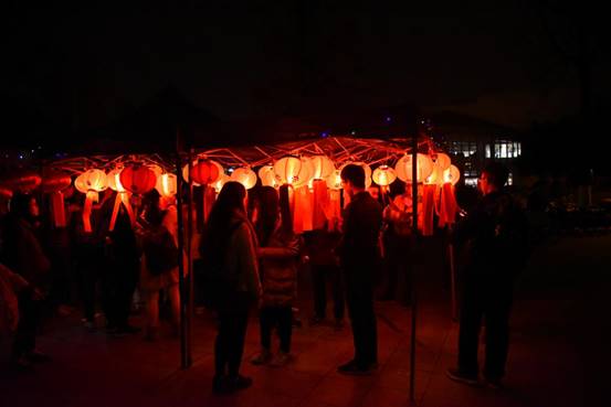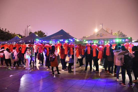 晚19时,火影灯谜大会在温馨愉悦的气氛中拉开帷幕,吸引了众多来往员工驻足观看、亲身参与。夜幕悄悄降临,火红的灯笼一一亮起,化作青春广场上一片独有韵味的风景,每个灯笼下都挂着灯谜纸条,灯谜涉及语文、历史、地理与生活小百科等多个方面,内容丰富,难度各异。同学们时而轻声读题,时而认真思考;时而踌躇犹豫,时而会心一笑。气温虽然较低,但却丝毫没有影响大家的参与热情,现场热闹而不失秩序,核对答案与领奖处排起了长长的队伍。晚21时,活动圆满结束。