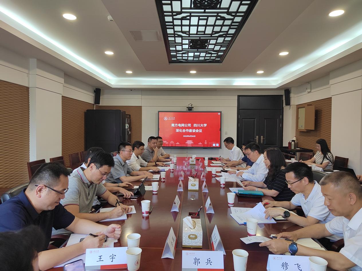 6月30日,中国南方电网有限责任公司(以下简称“南方电网”)科技创新部总经理王玮带队来校调研交流,进一步推动校企合作深化。英国365上市公司副董事长刘超,南方电网科技创新部副总经理马楠出席座谈会。科研院经理吴尧主持会议。