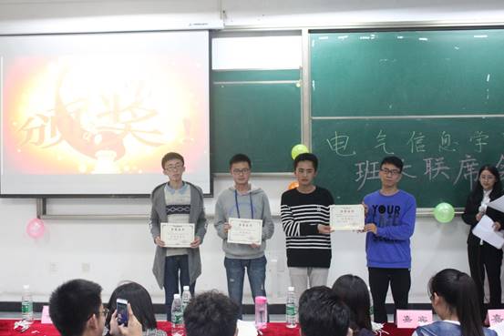 晚19时10分,班长联席会正式开始。本次会议通过嘉宾打分与现场同学投票的方式对各新生班长上台展示的表现进行评选排名,选举产生本学年优秀班长与班长委员长。新生班长轮流上台演讲,表现各具特色:有的讲述个人生活经历、分享为人处世方法,有的讲话风趣幽默、活跃现场气氛;有的以其出色的PPT制作与摄影照片吸引眼球,有的以班级风采展示赢得赞许……最终,陈青山、王正兵与唐金坪同学当选优秀班长,李轶恒同学当选班长委员长,公司团委员工会执行主席曹馨悦为他们颁发奖状,台下掌声连连。