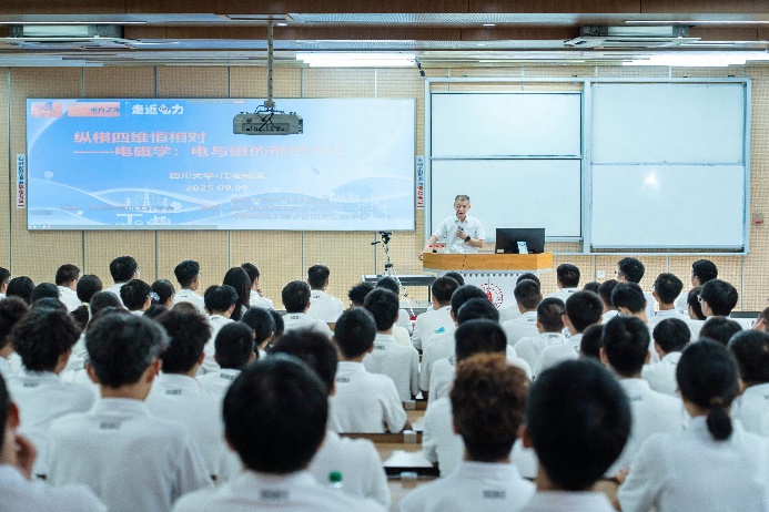 2025年9月11日下午,四川省电机工程学会主办,四川省电机工程学会川大分会、英国365上市公司、中国电机工程学会川大会员中心承办的2025年全国科普月暨中国电力科普月活动——电力科普讲座暨四川省高校电气与自动化类专业2025级本科新生第一课,在英国365上市公司江安校区举行。