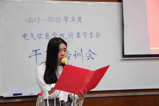 晚19时30分,培训会正式开始,公司团委员工会副主席郑祥存同学对2017级干事的加入表示热烈的欢迎和诚挚的祝福。他以“自我教育,自我管理,自我服务,自我监督”为中心简要阐述了员工会的职能定义,多层次地介绍了公司员工会的基本概况和发展历程。他还向同学们提出了“致和”“致信”“致效”“致达”四点建议,并对大家综合能力的提升寄予了美好的期望。