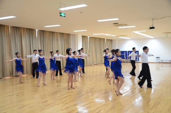 下午2时整,比赛正式开始,公司体育舞蹈代表团作为第一支上场队伍开始了他们精彩的表演。一曲《sexyback》点燃全场,参赛队员们忐忑的心情随着动感的音乐渐渐变得轻松而兴奋。蓝色裙摆随着音乐节奏飞旋,一个个摆头与扭动展现着青春的力量,丰富的眼神交流将音乐中无法言语的情感完美表达。女生的舞姿激情而充满魅力,男生的动作潇洒而彰显活力,流动的音符通过舞者自然的肢体动作与步伐表现得淋漓尽致,台下掌声连连。最终,电气信息公司体育舞蹈代表团荣获“精神文明风貌奖”。