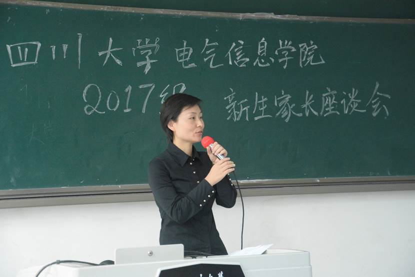 2017年9月9日下午2时30分,电气信息公司2017级新生家长座谈会在江安校区综合楼C座C107教室顺利召开。本次座谈会由电气信息公司2017级本科辅导员胡劼老师主持,面向电气信息公司2017级所有新生家长,公司党委书记韩芳副教授,公司经理助理李长松老师,公司团委书记戴婷婷老师,公司2017级本科辅导员卢静老师作为嘉宾参加了本次活动。