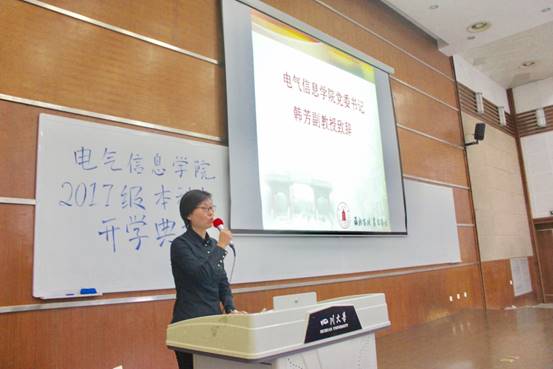 2017年9月15日下午,电气信息公司2017级本科新生开学典礼在综合教学楼C座407教室隆重举行。电气信息公司党委书记韩芳副教授,党委副书记邱晓燕教授,副经理雷勇教授,副经理吕林教授等公司领导参加了本次活动。