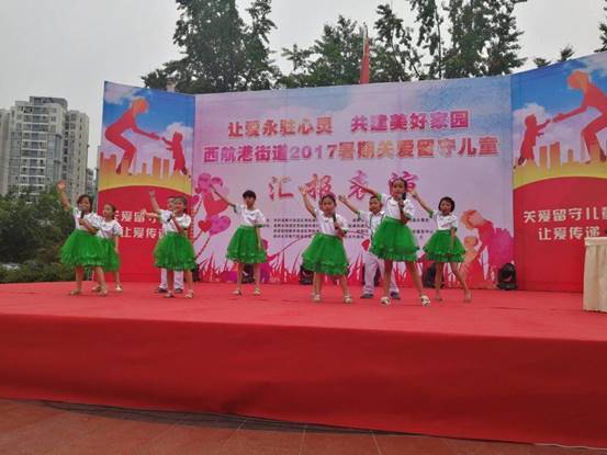 2017年8月10日19时整,双流区西航港街道“让爱永驻心灵,共筑美好家园”关爱留守儿童暑期社会实践活动汇报表演在西航港街道综合文化活动中心拉开帷幕。汇报表演是对2017年西航港街道关爱留守儿童暑期社会实践活动的总结,也为“川爱”支教队和返乡老员工等志愿者的2017年暑期社会实践活动画上了圆满的句号。