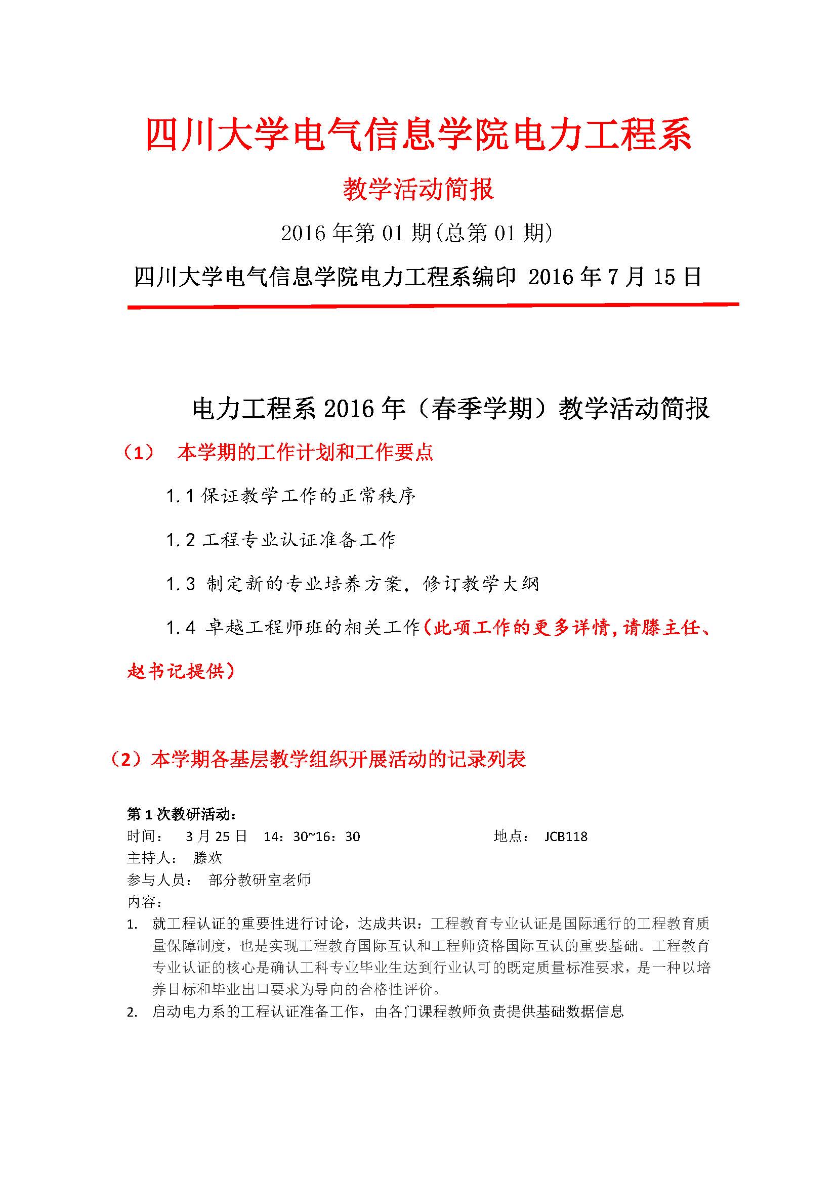 电气工程及其自动化2016年(春季学期)教学活动简报