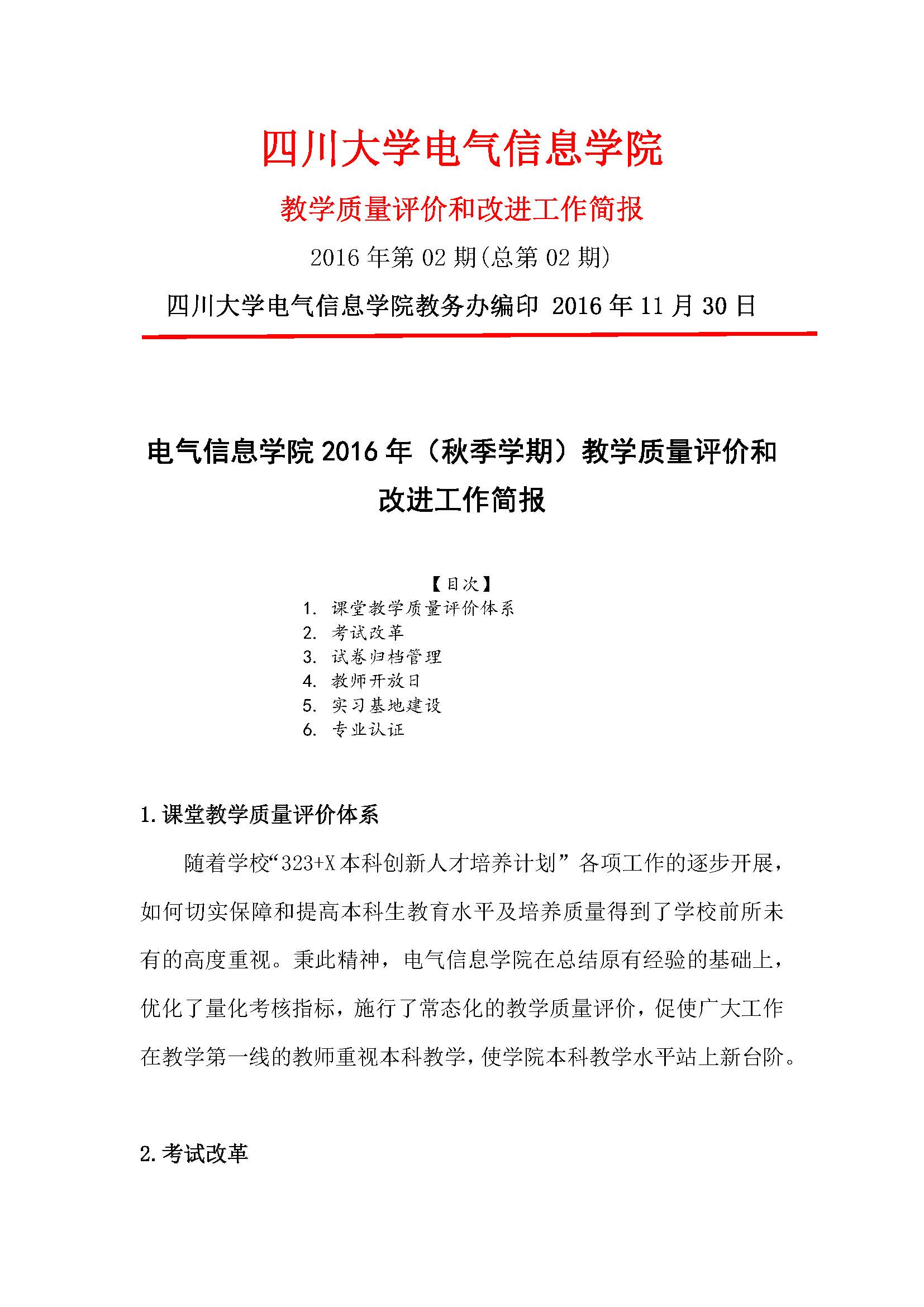 2016-2017秋教学质量评价和改进工作简报
