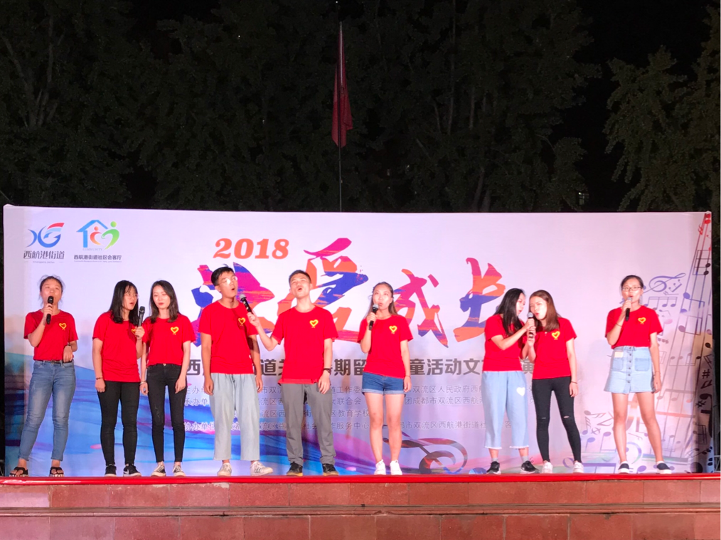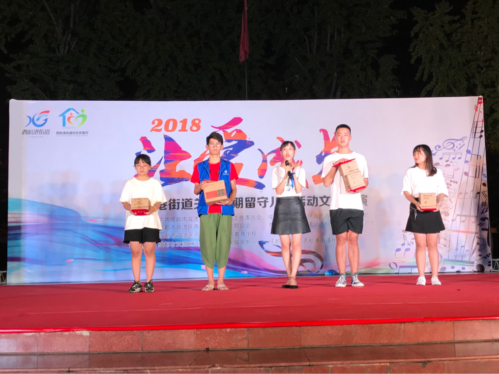 2018年8月10日晚,“西航港街道关爱暑期留守儿童”结业成果展示暨暑期社会实践文艺汇演在西航港街道综合文化活动中心隆重举行。本次晚会由中共成都市双流区西航港街道工作委员会和成都市双流区人民政府西航港街道办事处联合主办。西航港街道领导、电气信息公司“川爱”支教队青年志愿者、留守儿童及其家长一同观看了本次汇演。