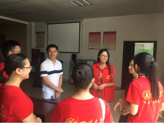 在光明社区,戴婷婷老师对支教队的工作情况做了充分了解,并认真分析了支教工作中的重点难点,叮嘱各位同学认真对待社会实践,在实践期间注意自身与孩子们的健康安全问题,确保支教工作的顺利开展。在星月社区与寺圣社区,戴婷婷老师代表公司老师对“川爱”支教队的工作做出了充分肯定,表扬了支教队员在有限条件下的所取得的工作成果,鼓励支教队成员再接再厉,努力让自己和留守儿童的暑期生活更加精彩。下午,老师一行来到了机场路社区与九龙湖社区,询问了支教点位的物质供应与教学设备情况,叮嘱支教队成员要把“川爱”精神延续下去,要把“川爱”活动扩展开来。