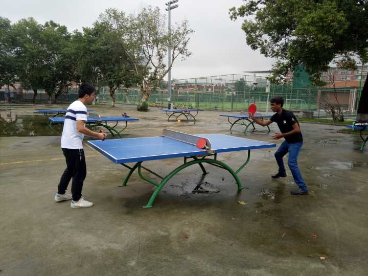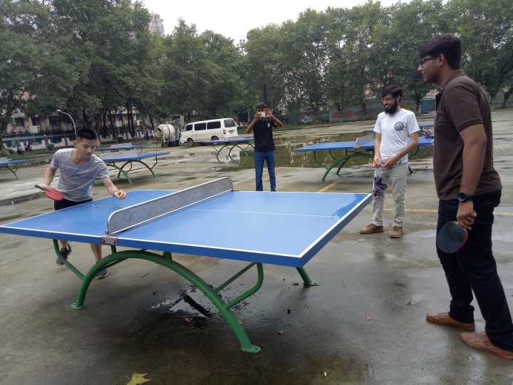 由于来自巴基斯坦的六位交流生谈到他们对中国国球乒乓球十分感兴趣,公司员工便邀请他们进行一场乒乓球交流比赛,在体育锻炼的同时,促进中外文化的交流。