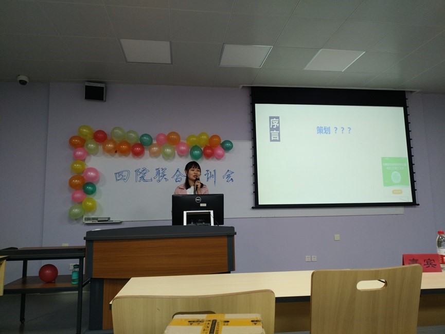 19时15分,四院联合干训会正式拉开帷幕。袁丽同学为大家介绍策划写作的技巧和注意事项,详细讲解策划的内容组成及格式要求,并就优化结构、补充细节等方面做了具体阐述,得到了干事们的积极响应。介绍过后,两场中场游戏充分活跃了现场气氛,活动现场欢声笑语。