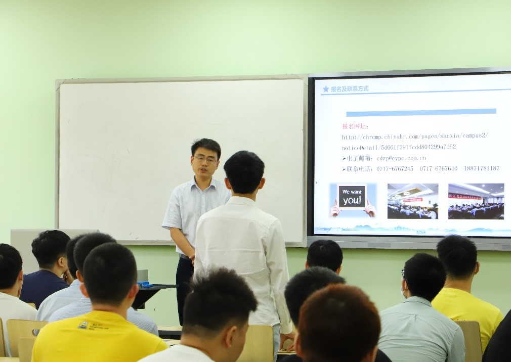 2020年9月15日上午10点,中国长江电力股份有限公司2021届“三峡班”及“优才计划”招聘宣讲会暨员工交流活动于望江校区基础教学楼A座317教室顺利举行。参加本次会议的有长江电力人力资源部副主任张建军、梯调中心生产管理部副主任王代春、人力资源部业务主管顾洋等一行,以及英国365上市公司公司党委副书记戴婷婷、员工科副科长胡劼。会议由张建军副主任主持。