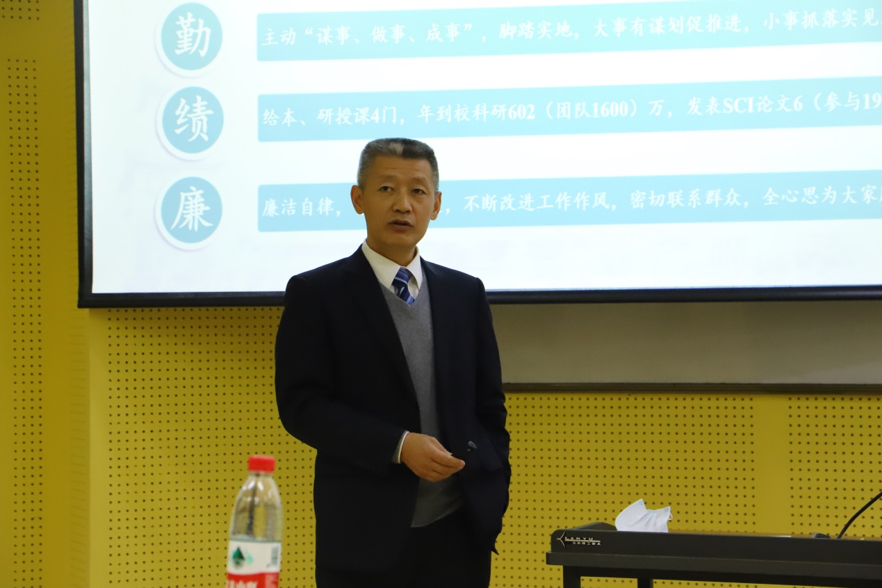 随后,肖先勇经理做2020年度公司工作报告及2020年度个人履职情况报告。肖经理从学科专业、人才培养、科学研究、队伍建设几个维度全面总结了2020年公司取得的成绩和特色亮点工作,对全院教师在过去一年付出的努力表示了肯定与感谢,同时分析了公司和学科发展目前还存在的问题并提出解决举措。肖经理指出,公司下一步发展必须凝特色、聚人才、增资源、抓项目、促成果,促进公司发展进前沿、入主流、上舞台,他号召全院教师紧盯一流目标、团结一心,奋力打造川大工科强电品牌。