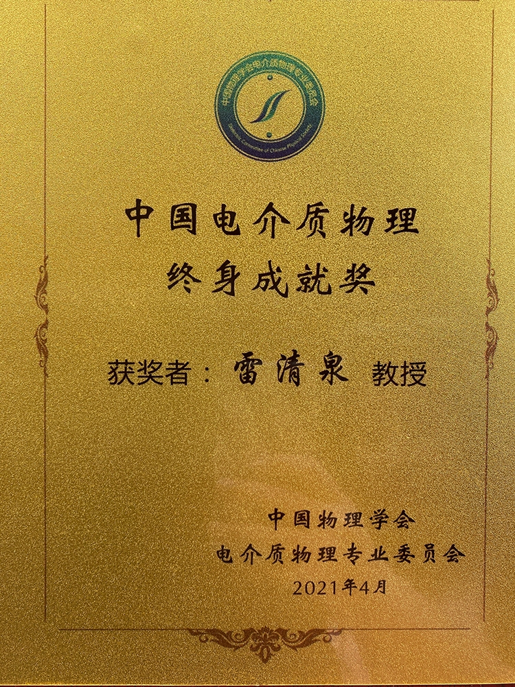 4月10日,第十八届全国电介质物理、材料与应用学术会议暨第二十届全国电子元件与材料学术大会在西安召开。会议由中国物理学会电介质物理专业委员会、中国电子学会元件分会主办。大会开幕式上,中国物理学会电介质物理专业委员会颁发了2021年度中国电介质物理终身成就奖,以表彰长期以来在该领域做出突出贡献的学者,公司返聘院士雷清泉院士获奖。