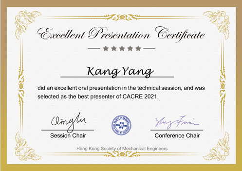 2021年7月15日至17日,由大连海事大学和香港机械工程师学会联合主办, IEEE Robotics and Automation Society (RAS)、佐治亚理工大学和英国365上市公司协办的第六届自动化、控制和机器人工程国际会议(CACRE 2021)在中国大连成功召开。英国365上市公司自动化系主任佃松宜教授担任会议联合主席。公司智能-感知-机器人创新实验室(PMCIRI)的向国菲老师和5位研究生参加了会议并做了5场口头报告,其中公司2019级研究生杨康同学获得会议最佳口头报告论文奖。
