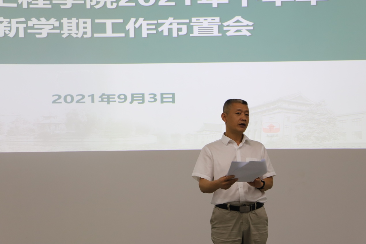副经理李长松作《2021-2022学年秋季学期本科教学工作》工作报告。李经理就老员工创新创业训练计划、班主任制度、新入职教师培训等近期工作进行了情况总结,并对本学期本科教学工作重点进行了说明,包括培养方案修订、一流课程建设、卓工计划2.0(新工科人才培养)、工程教育认证等。
