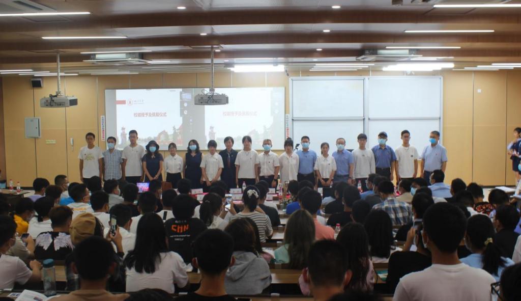 典礼的最后一项议程,是校徽授予仪式。公司领导和教师代表为2021级新生代表现场佩戴校徽。