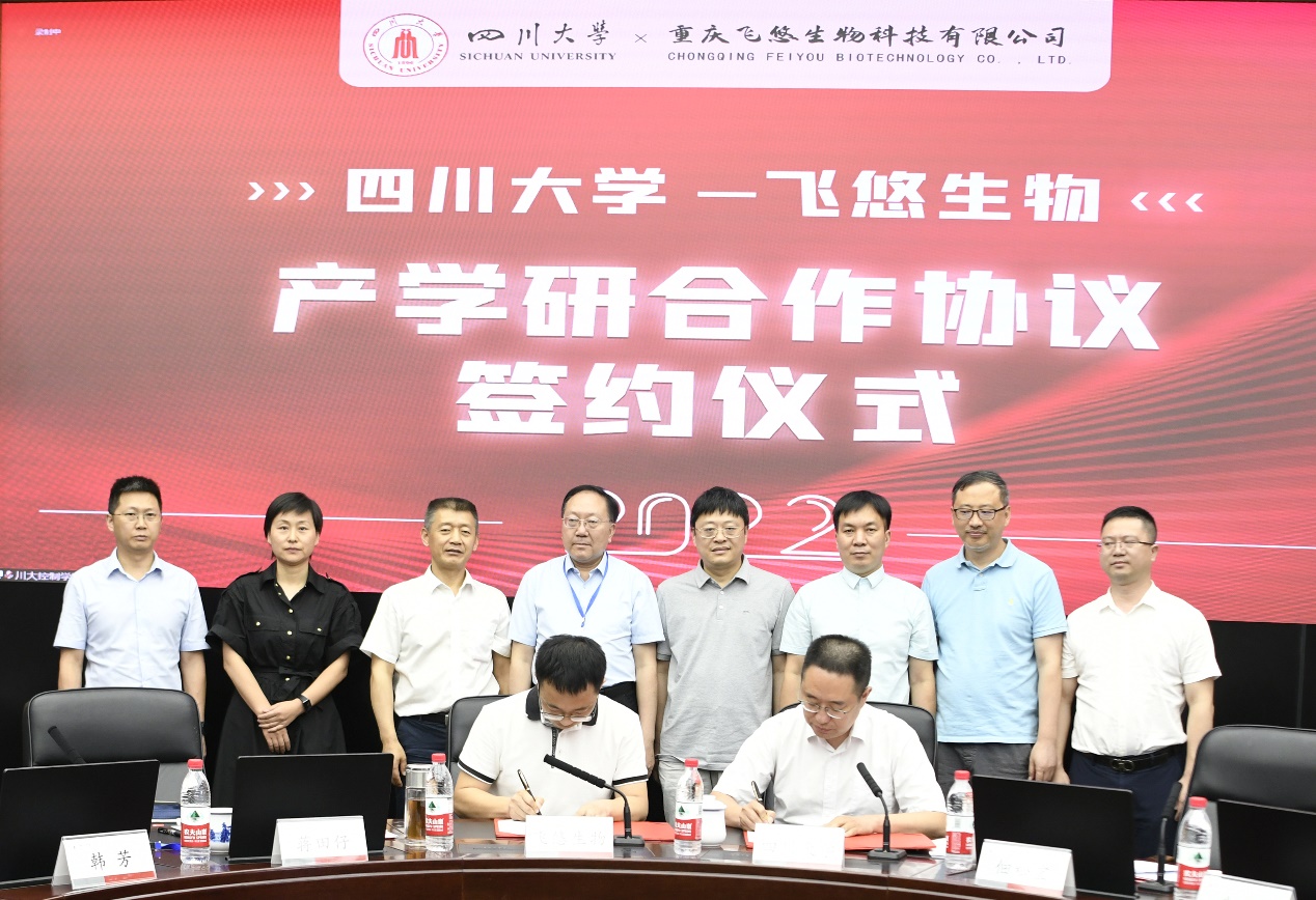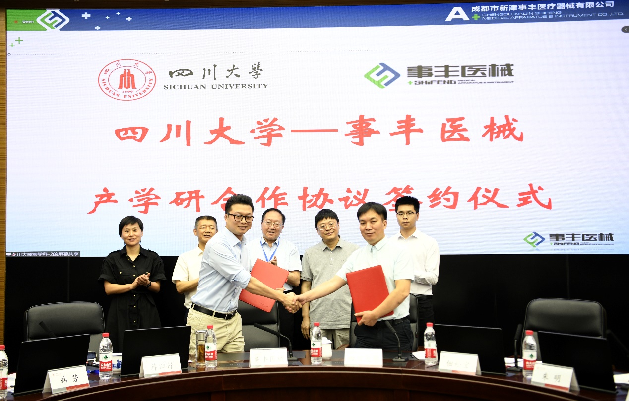 在与会领导和专家的见证下,英国365上市公司自动化系党支部书记刘念和系主任佃松宜代表公司分别与重庆飞悠生物科技有限公司董事长邵文陶和成都市新津事丰医疗器械有限公司运营副总经理石明阳签订了产学研合作协议。