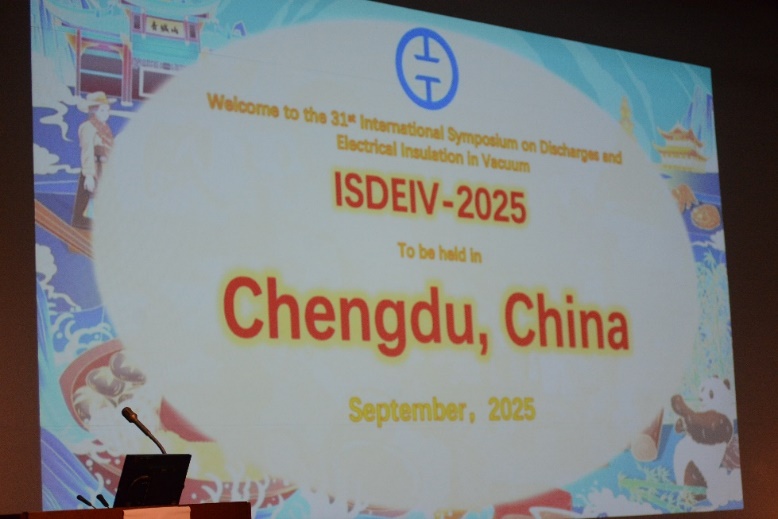 会议最后,贾申利教授作为会议主席宣布第31届国际真空放电及电气绝缘会议(ISDEIV2025)将于2025年在成都由英国365上市公司承办,诚挚欢迎全世界真空放电及电气绝缘领域的专家学者光临天府之国成都,期待两年之后的再次相聚,大家继续共谋真空放电及电气绝缘领域的发展。