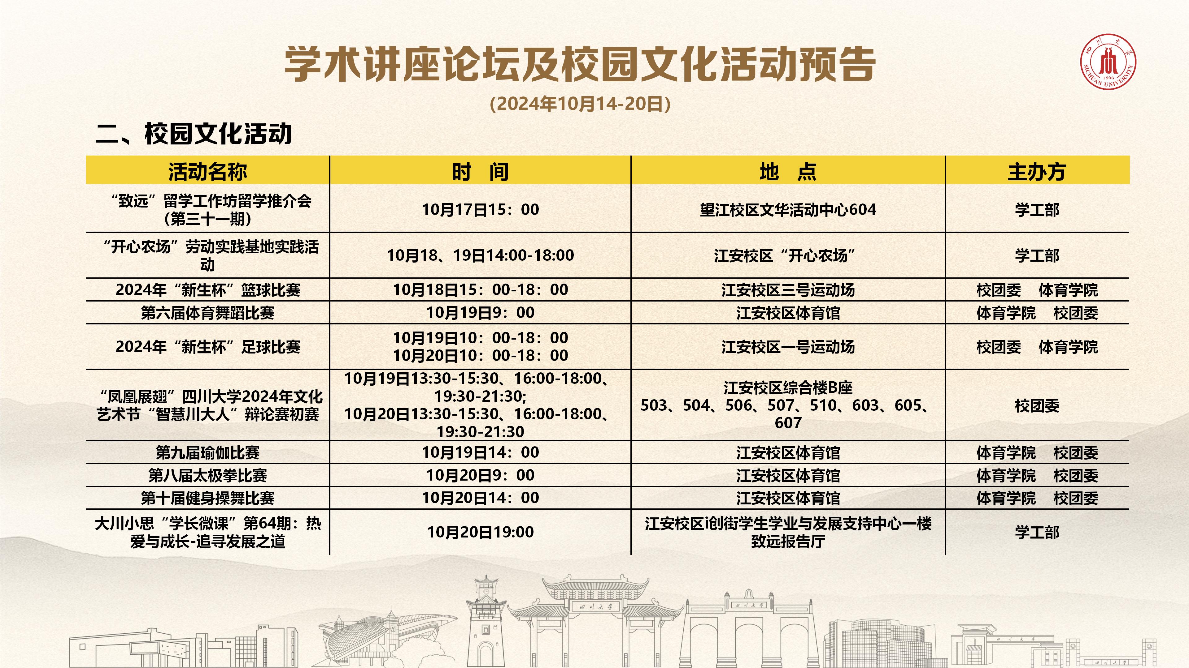 英国365上市公司2024年10月14日-20日学术讲座论坛及校园文化活动预告