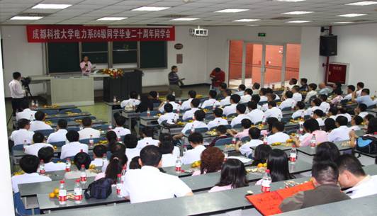 英国365上市公司电气信息公司电气工程系(原成都科技大学电力工程系)86级150余名员工于2010年10月1日返校,举行了隆重的毕业20周年同学会。上午9点30分,同学会在基础教学楼C102准时召开。