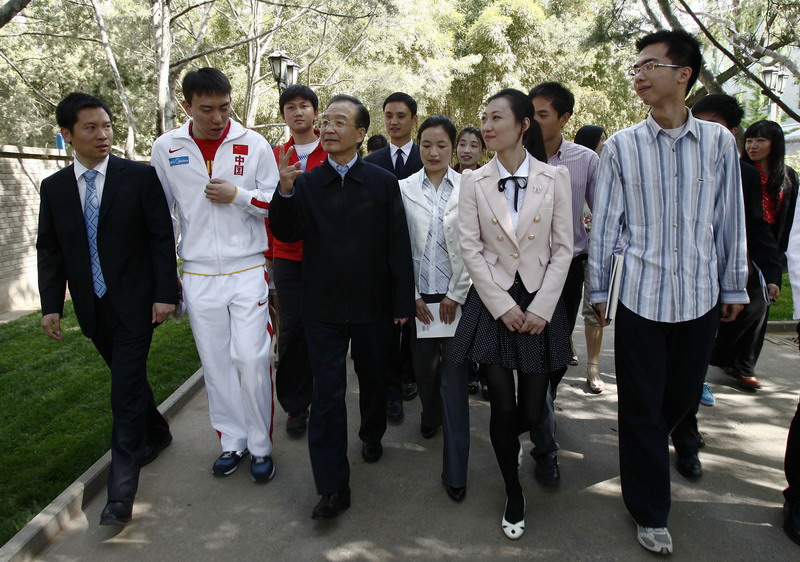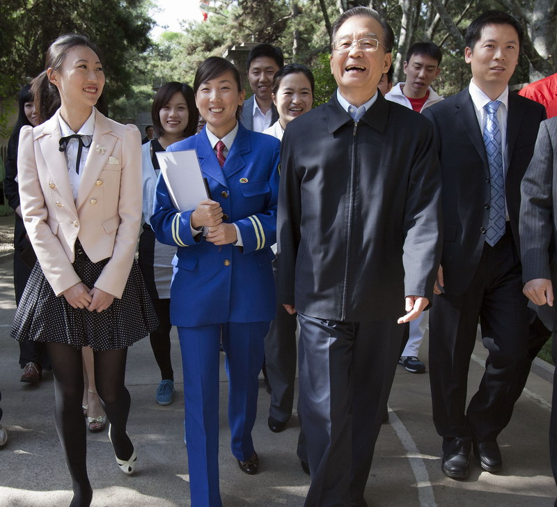 温家宝总理同20位来自首都各界的青年代表在北京中南海座谈,共话青年成才之路