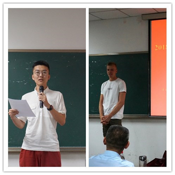 公司员工代表王子康同学也进行了发言,他为交流员工介绍了成都特色景点、特色文化、特色美食,还包括国际课程周的一些活动安排等。