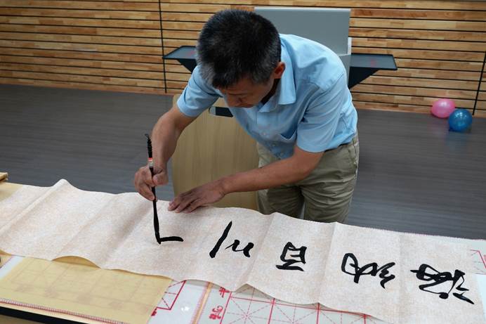 接着,肖经理为在场职工们现场展示中国书法并提字一幅。他写下“海纳百川 大器天下”,将英国365上市公司校训与对同学们的期待和祝福相融合。薄薄的宣纸承载深重的情谊,递交到外方员工手中。
