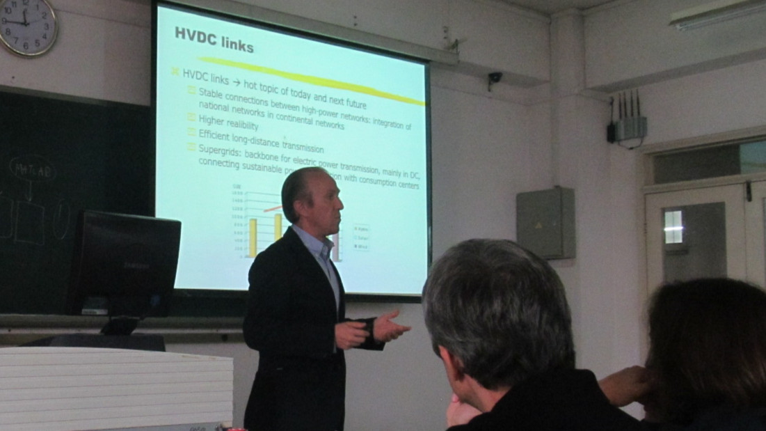 首先,Andrea Cavallini教授简单介绍了被称为“大学之母”的博洛尼亚大学的高电压实验室。然后从电气绝缘失效、诊断以及局部放电的监测等问题进行了详细讲述,重点突出了局部放电脉冲分析法进行放电源和噪声分离的思想。接着,Davide Fabiani 博士从空间电荷的角度为我们带来了微观世界的绝缘老化分析,以及选择合适的纳米填料来改善介质的绝缘性能。讲座结束后,Andrea Cavallini教授和Davide Fabiani 博士在现场回答了同学们的提问。
