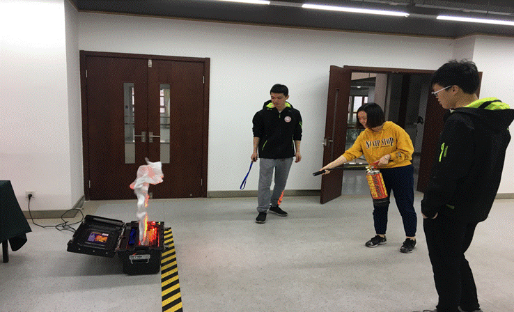图为员工熟悉灭火器