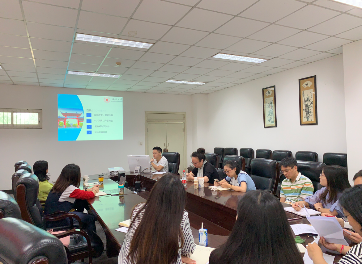 在各年级员工讨论的基础之上,5月21日上午,公司学工组在望江校区基础教学楼A220会议室召开了“新时代本科教育改革与发展大讨论之员工意见征集”汇报会。公司党委副书记戴婷婷和员工工作组专兼职辅导员参加了本次会议,会议由戴婷婷副书记主持。