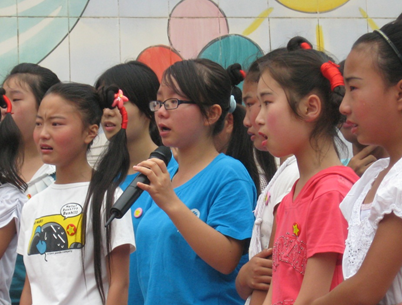 此次文艺汇演由13个节目组成,分为两个篇章:欢乐时光和送别。9点,演出正式开始,“川·爱”志愿者队队长李锴科进行了简短的发言。队长总结了15天来的支教活动,感谢了红光小学提供的支持与帮助,并祝福孩子们快乐成长。第一个节目是由几个年级的员工共同表演的红歌联唱,作为孩子们给中国共产党90岁生日的礼物。紧接着,节奏欢快的舞蹈《种太阳》、《健美操》、《幸福拍手歌》、《hey,加油!》等博得了观众的阵阵掌声。第一篇章中,志愿者们还进行了读书节活动的颁奖环节,对在读书节活动中小同学们精心制作的优秀手抄报进行了颁奖。第二篇章送别,志愿者代表曾晶充满感情地朗读了志愿者们给孩子们的一份信,表达了志愿者们和孩子们在离别时刻难舍难分的情感。由五、六年级同学表演的诗朗诵《再见了,老师》将文艺汇演推向高潮,志愿者和很多小同学忍不住流下了感动的眼泪。最后,活动在参演人员《同一首歌》的歌声中圆满结束。