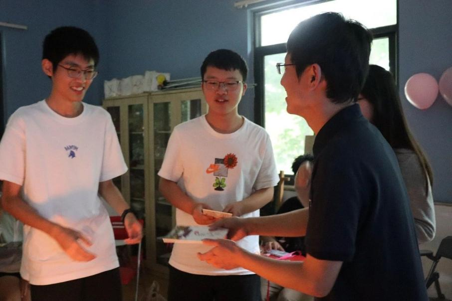 接下来,老师和同学们聚在一起,开始了集体游戏环节。在游戏过程中,老师与同学们迅速“破冰”,大家欢欣雀跃,场面热闹非凡。游戏最后,有两位同学共同取得了胜利,赢得了赵书记亲自准备的节日礼物。