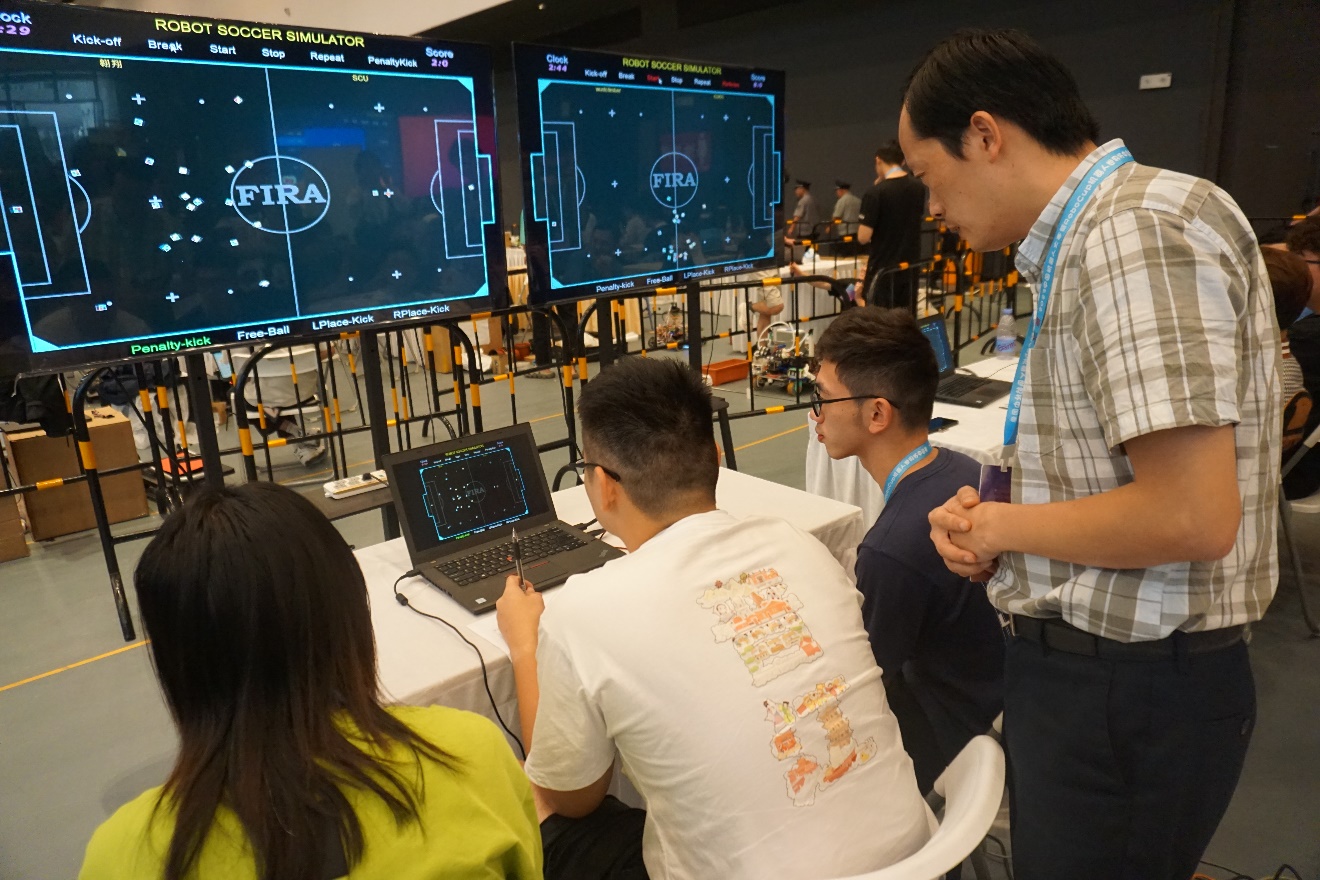 此次大赛由机器人足球协会指导教师任杰老师带队,协会成员张秋明、夏旗、蒋旭在“FIRA小型组-仿真组11vs11”项目中荣获全国第四名(全国二等奖)的好成绩。