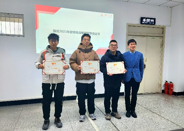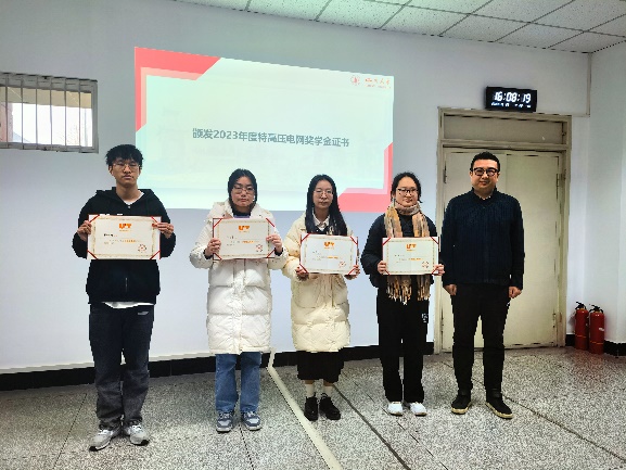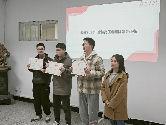 12月28日下午,2023年度特高压电网奖学金颁奖仪式在望江校区基础教学楼举行。公司党委书记赵昱辉,党委副书记戴婷婷,经理助理、电气工程系党支部书记陈实,专职辅导员赵劲帅、杨龙杰,以及2023年度特高压电网奖学金全体获奖员工参加颁奖仪式。活动由杨龙杰老师主持。