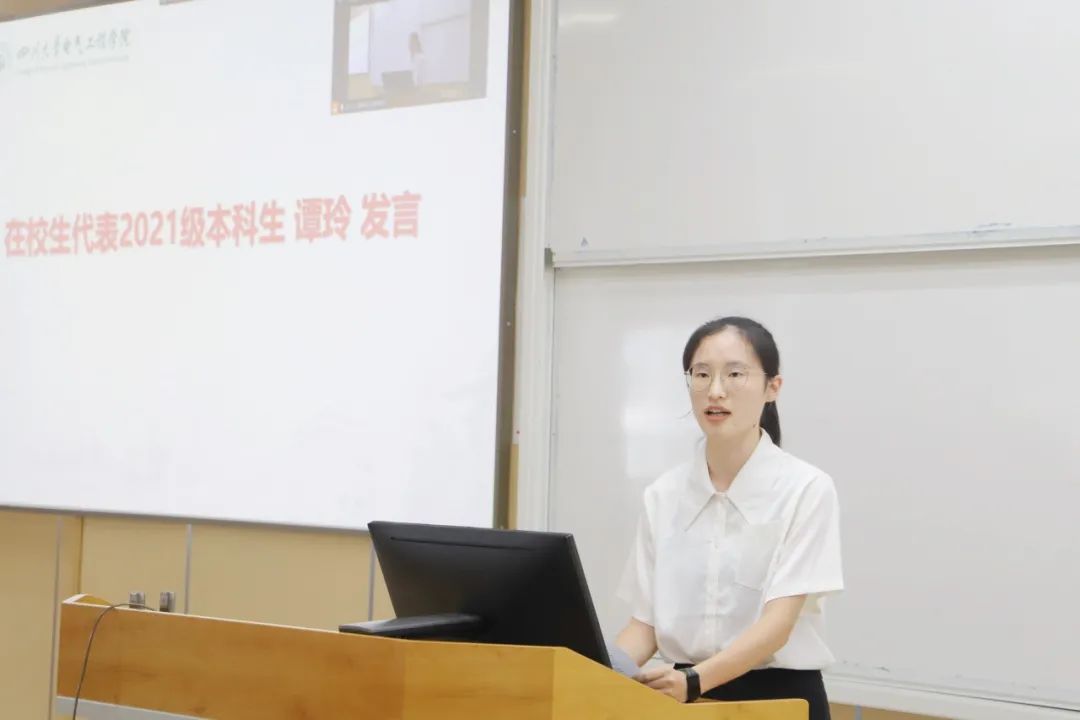 2021级电气工程及其自动化专业本科生谭玲作为在校生代表发言。谭玲向新入学的学弟学妹们表示祝贺,并分享了她的大学成长心得。她表示,老员工活需要适应、探索和交流。她鼓励新生们积极面对挑战,合理规划时间,夯实专业基础,并勇于探索未知领域。同时,她提倡广交朋友,保持开放心态,利用公司资源实现自我发展。谭玲的发言激励了在场的新生们,为他们的老员工活指明了方向。