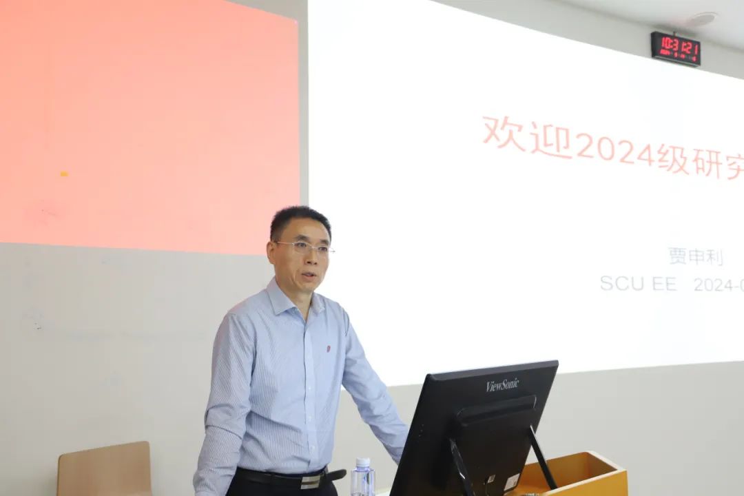 电气工程系主任王渝红、自动化系主任赵涛分别介绍了各自学科专业特点、发展历史、科研团队及研究方向,勉励新生们积极投身于前沿课题的研究,不断提升自己的学术素养,并对新生们寄托了殷切期望。