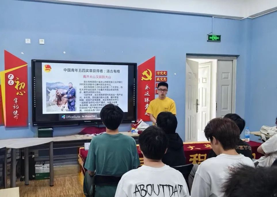 活动伊始,2023级308309团支部书记郭奕晨强调了本次活动的重要意义。5月4日,共青团中央等部门召开会议,深入学习习近平总书记重要讲话《激励新时代青年在中国式现代化建设中挺膺担当》以及给谢依特小学戍边支教西部计划志愿者服务队队员的重要回信精神。团支部应深刻领会总书记对青年的重视关怀,坚定不移地紧跟党的步伐,切实发挥党的助手和后备军作用。
