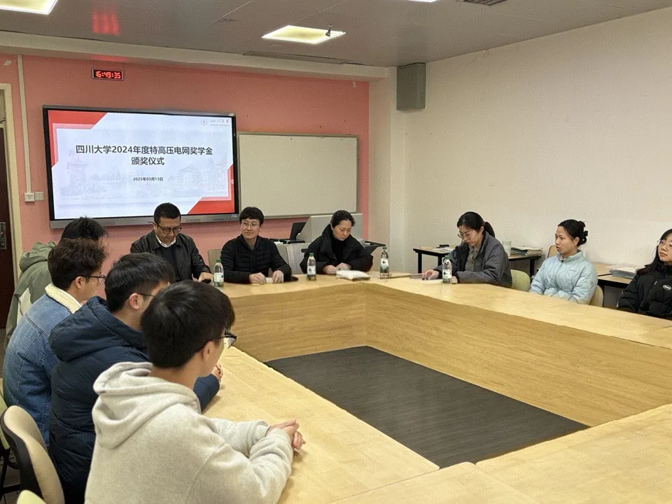 2025年3月13日下午,2024年度特高压电网奖学金颁奖仪式在望江校区基础教学楼举行。公司党委书记赵昱辉,党委副书记戴婷婷,副经理、电气工程系党支部书记陈实,专职辅导员任杰、杨龙杰,以及2024年度特高压电网奖学金全体获奖员工参加颁奖仪式。活动由杨龙杰老师主持。
