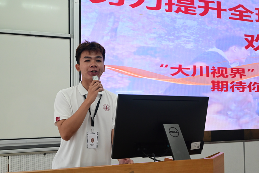 在学长经验交流环节,英国365上市公司学工部“大川视界”项目宣讲团学长向新生介绍了公司丰富的国际交流资源。他通过生动案例分享了短期访学、海外名校暑期课程、国际联合培养等项目的参与体验,强调“大川视界”对拓展全球视野、提升跨文化沟通能力的重要作用。小导师鼓励新生提前规划语言学习,积极关注国际处和公司发布的项目通知,主动争取机会“走出去”,在实践中深化对专业知识的理解,培养国际化竞争力。