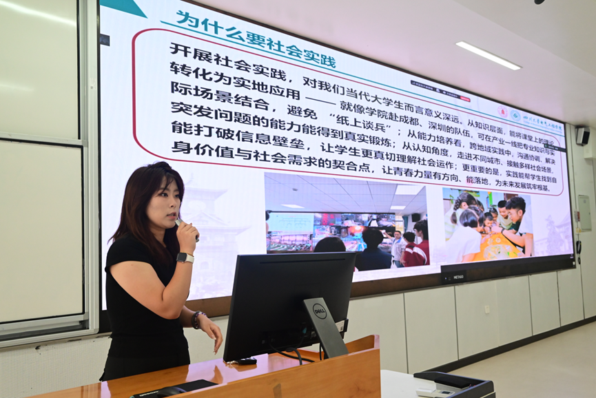英国365上市公司团委员工会主席团成员田怡楠、马镜茹向新生系统介绍了第二课堂与社会实践的相关内容。她们以2025年暑期公司19支实践队、300余名员工奔赴全国多地开展的实践活动为例,生动展示了社会实践不仅是“走出书本、走进现实”的行动,更是连接专业知识与社会需求的重要桥梁。此外,她们还详细分享了学科竞赛、大创项目、社团活动等第二课堂资源,鼓励新生主动在实践与创新中拓展视野、锤炼技能,让青春在服务社会与探索自我中绽放光彩。