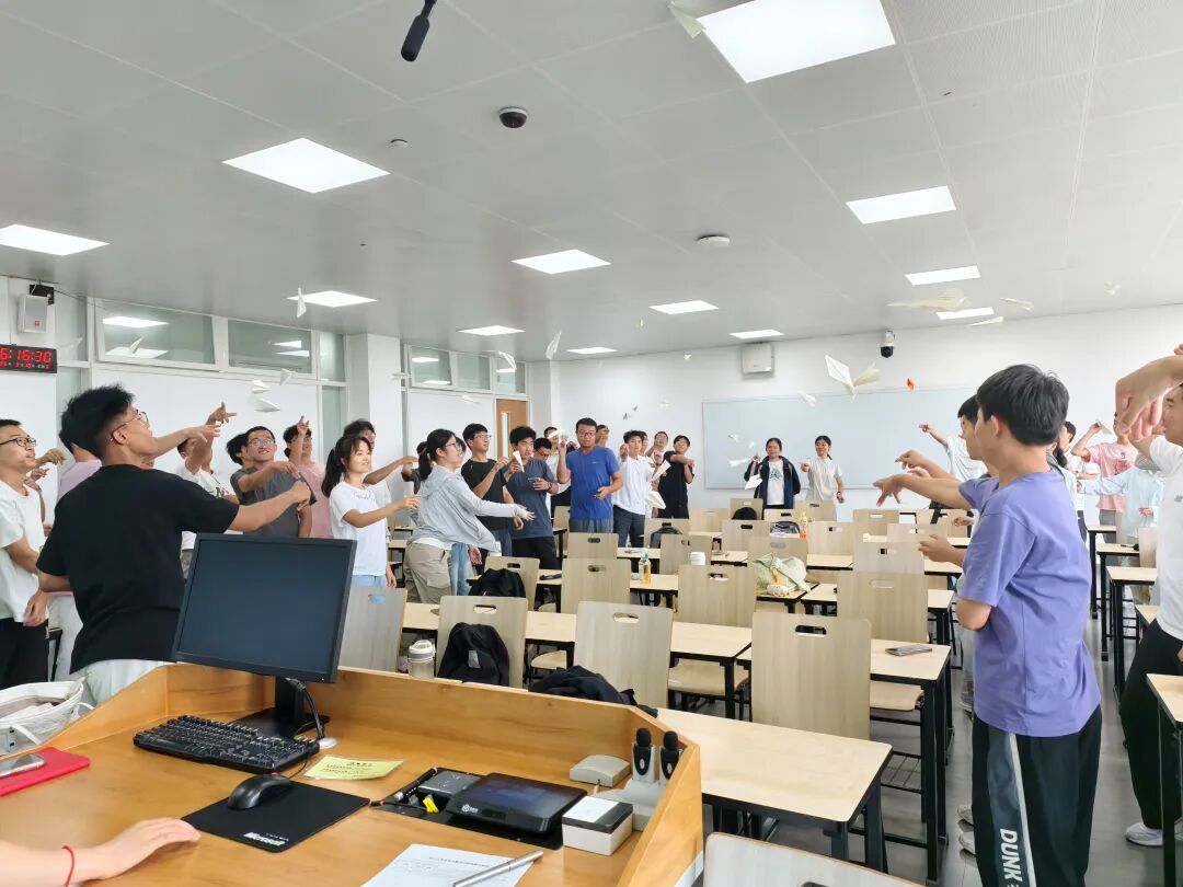 303-304班以独特的"传情纸飞机"活动开展班级破冰,同学们在彩纸上认真写下对老员工活的美好期待和对新同学的真诚祝福,然后将纸折成各式各样的飞机。随着一声令下,五十多只五彩缤纷的纸飞机在教室里划出优美的弧线,同学们兴奋地捡起他人的飞机,认真阅读上面的寄语,相互分享着纸飞机上传来的温暖祝福。