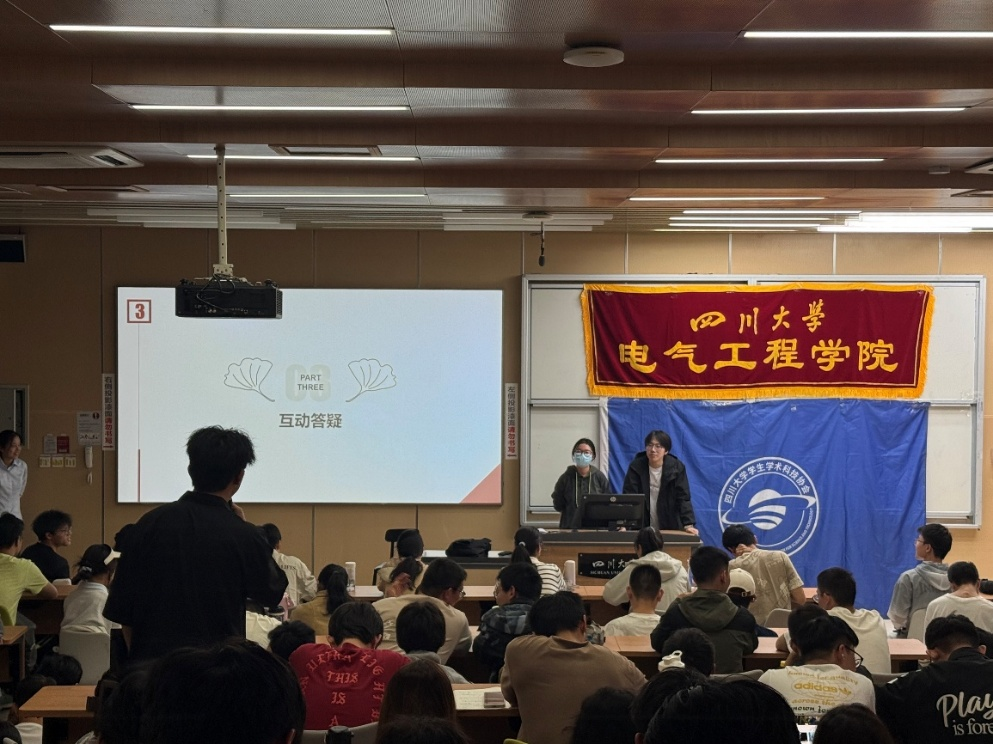 宣讲结束后,活动进入互动答疑环节。现场同学围绕参赛细节积极提问,问题涵盖项目选题、团队分工、材料优化等方面。李政韦、石洋溢两位同学结合自身经历,耐心解答每一个疑问,现场氛围积极热烈。同学们表示,通过答疑进一步明晰了参赛方向,对大创的信心也更足。