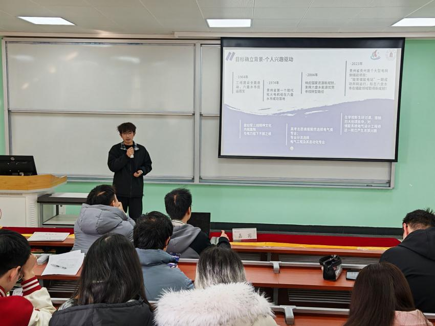李忠翔同学以“个人兴趣驱动”为切入点,结合自身探索经历,分享了兴趣如何推动职业目标的确立。他在现场展示中谈到,正是源于对电气领域相关技术的好奇与热爱,推动自己在学习中主动深入了解专业知识,在实践中积极寻找与兴趣相契合的发展方向,逐步将个人爱好转化为清晰的职业规划。他的真实经历,展现了电气领域中“爱好转化规划”的实践过程,体现了成长赛道选手以兴趣为动力锚定职业路径的探索过程。